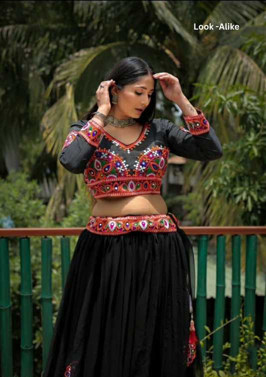 Elegant Premium Georgette Black-Color Special Garba Night Lehenga Choli