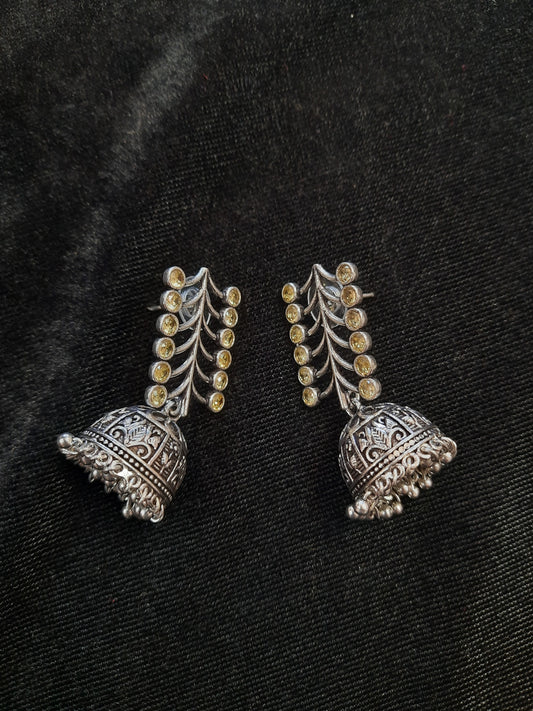 Alluring Pale Yellow And Silver Oxidized Earrings For Women