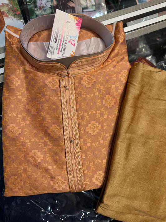 Gorgeous Beige Color Floral Jacquard Silk Embroidery Work Men's Kurta