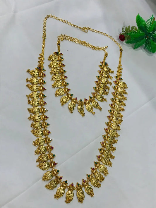 Gold Plated Lakshmi Temple Coin Long Chain With Choker Set