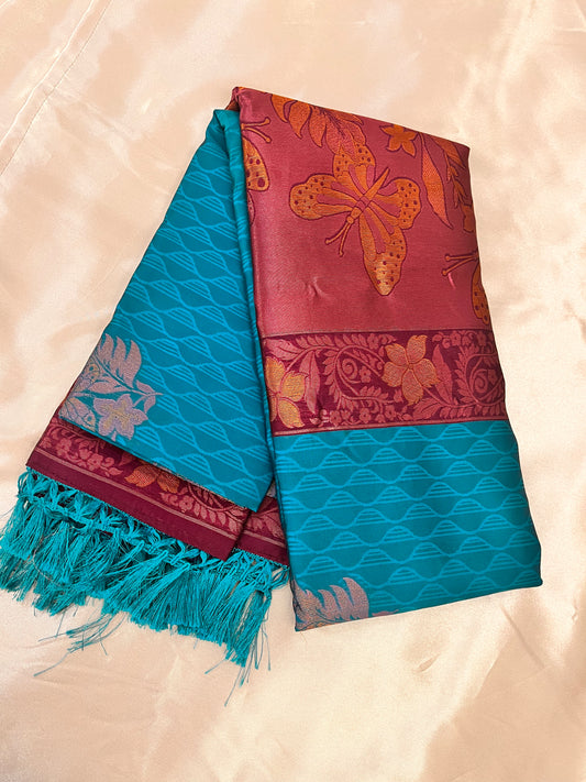 Gorgeous Teal Green Colored Banarasi Soft Silk Sarees For Women