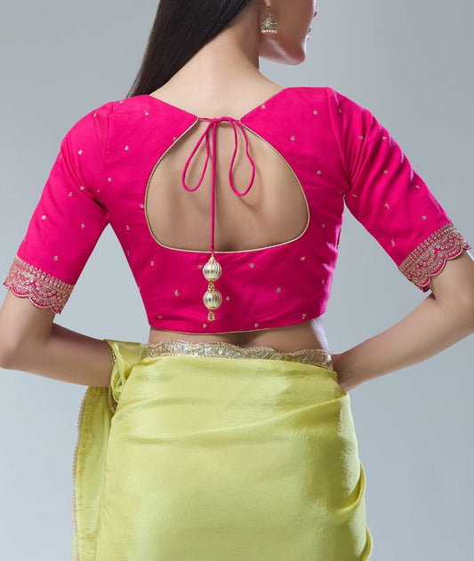 Alluring Pink Colored Milan Silk Ready To Wear Blouse For Women