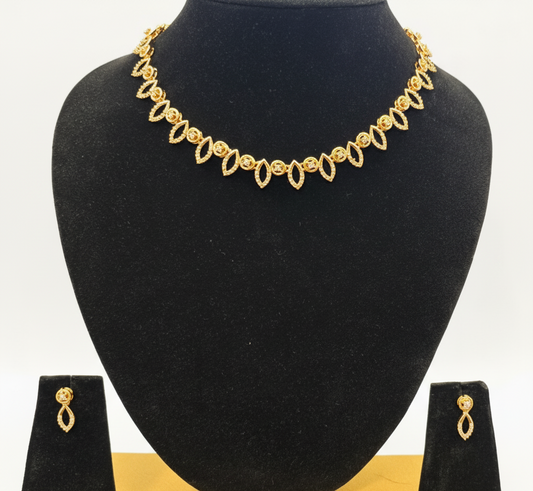 Stunning White Color Stones Gold Plated Necklace And Earings
