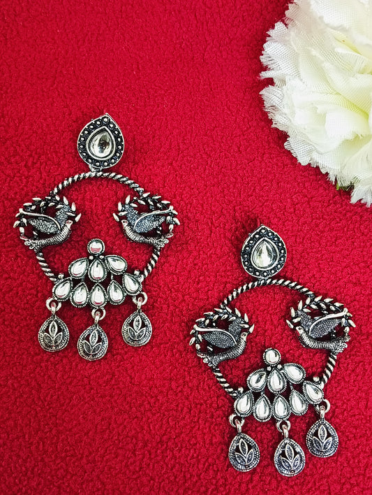 Stunning Peacock Shaped Oxidized Necklace With Earrings For Women
