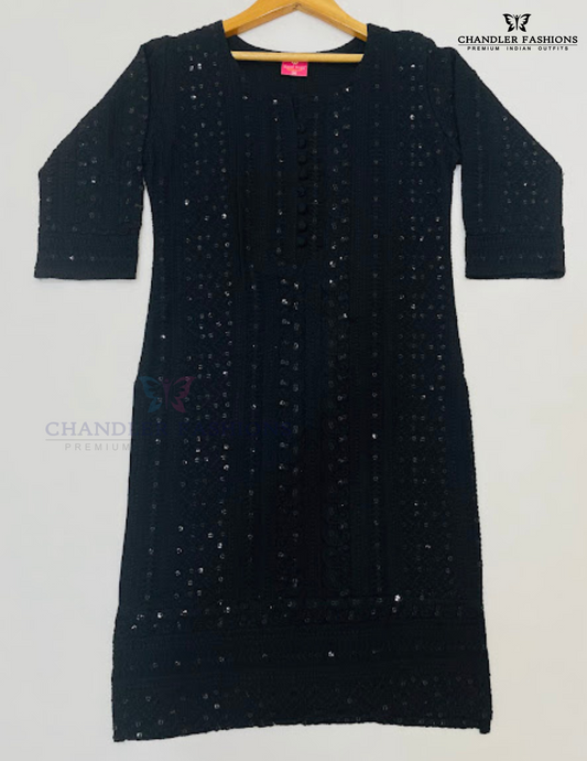 Appealing Black Color Soft Cotton With Chikankari Work Kurti For Girls