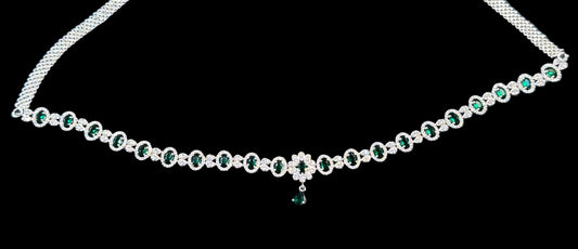 Appealing American Diamond Green And White Stone Work Hip Chain For Women
