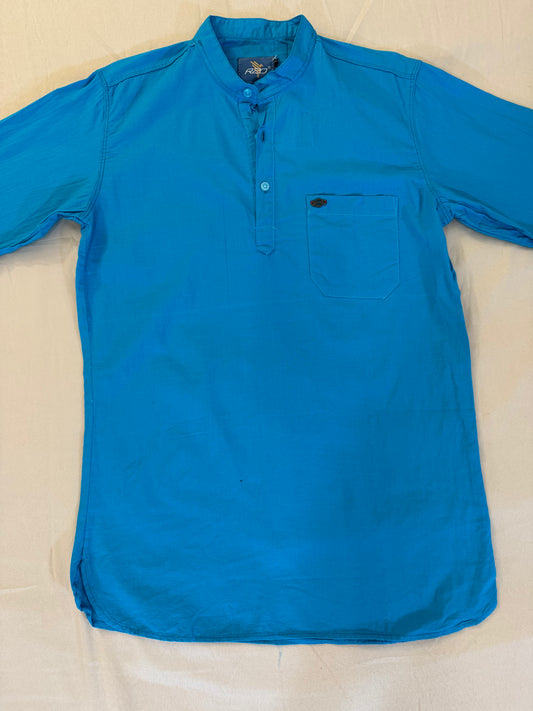 Alluring Blue Color Men's Short Kurta With Full Sleeves