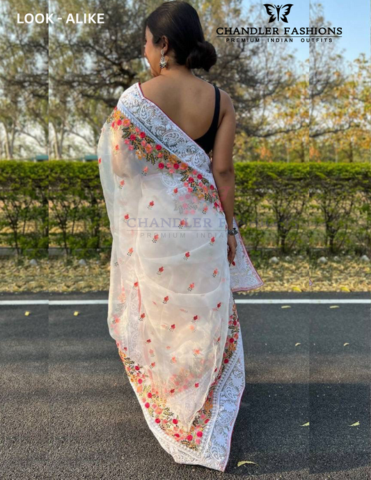Appealing Soft Silk Thread Chikankari Work In Pallu Multiple Color Work Viscose Border Saree For Women