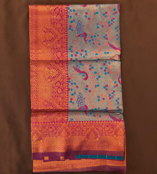 Attractive Goldish Teal Color Art Silk Saree With Contrast Border For Women