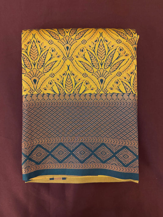 Attractive Kerala Kasavu Cotton Flower Embroidery Saree