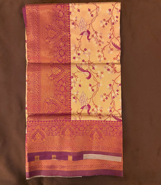 Attractive Peach Color Art Silk Saree With Contrast Border For Women
