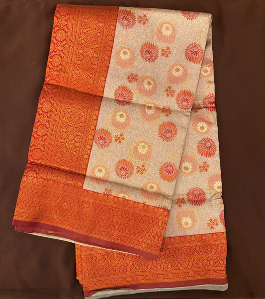 Attractive Orange Colored Contrast Border Art Silk Sarees For Women