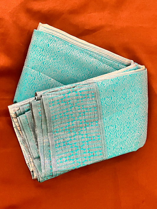 Attractive Teal Blue Color Silk Saree With Silver Design And Pallu