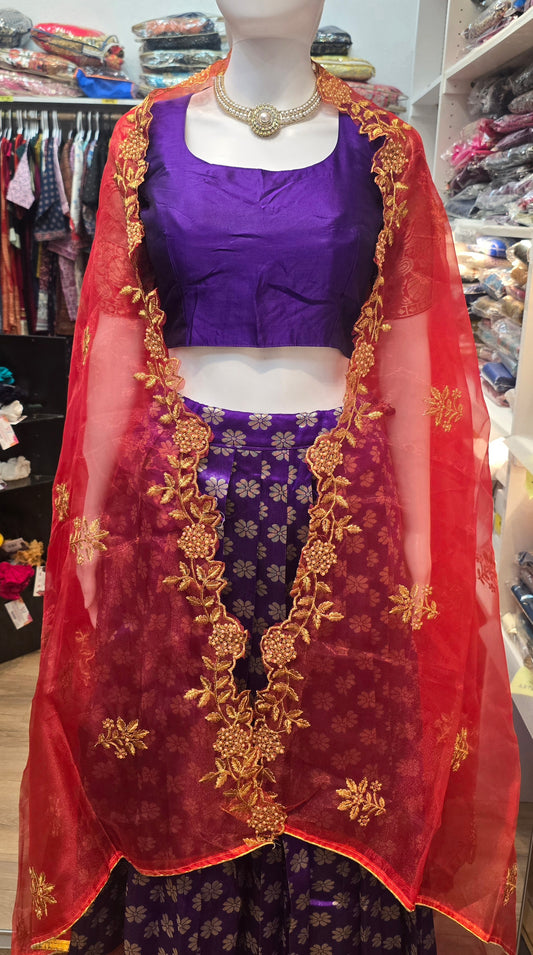 Charming Blue Color Banarasi Silk Dupatta With Zari Work With Silk Lehenga Choli