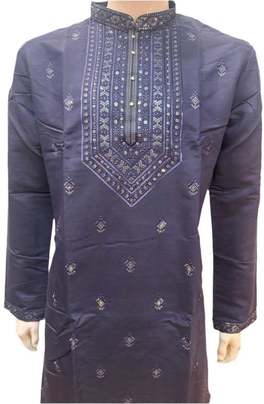 Charming Navy Blue Color With Cotton Embroidery Work Kurta Suits For Men