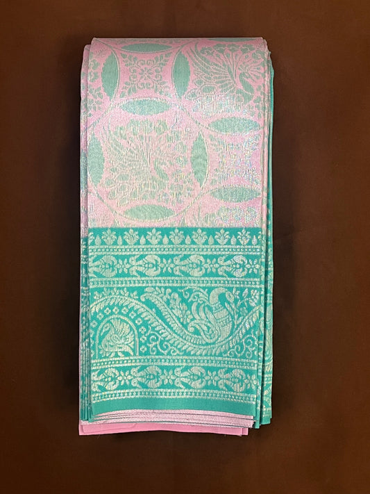 Attractive Light Pink And Light Green Color Motif Design Art Silk Saree For Women