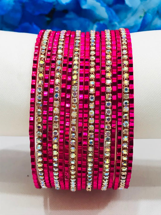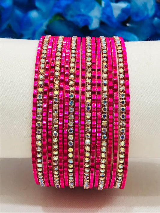 Amazing Rani Pink Color Designer Party Wear Metal Bangles For Women