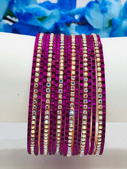 Attractive Dark Pink Color Stone Designed Party Wear Metal Bangles For Women