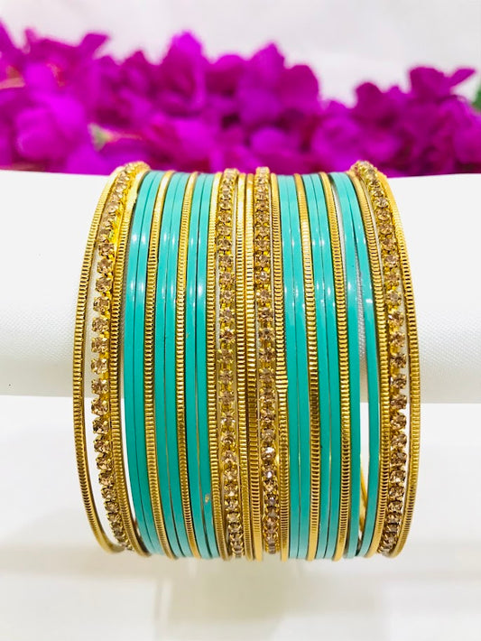 Dazzling Sky Blue Color Smooth Finishing Metal Bangles For Women