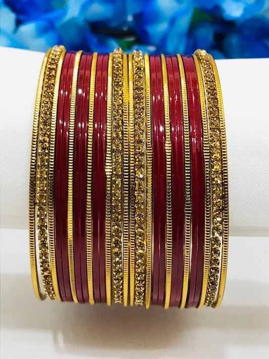 Charming Maroon Color Stone Worked Metal Bangles For Women