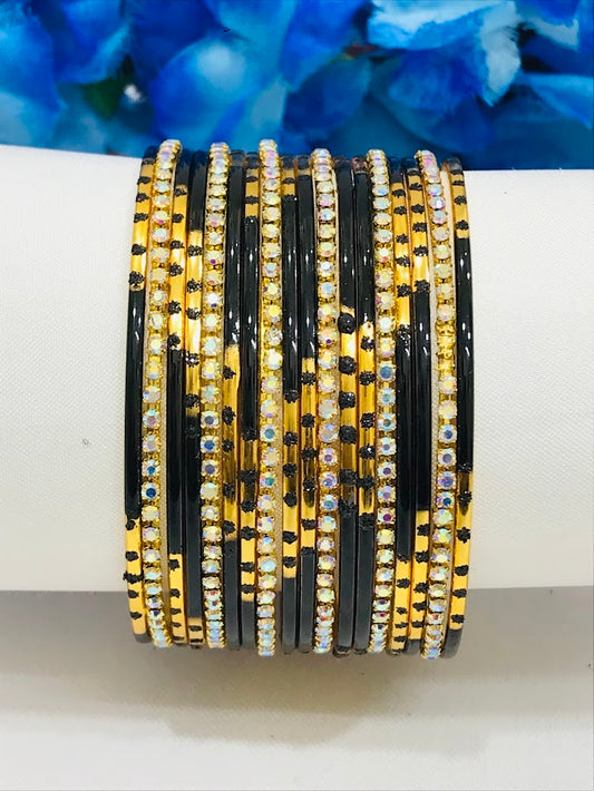 Resplendent Black color Gold Plated Metal Bangles For Women