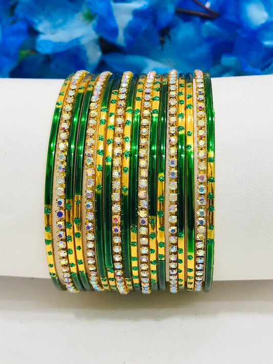Gorgeous Green Color Stone Design Metal Bangles For Women