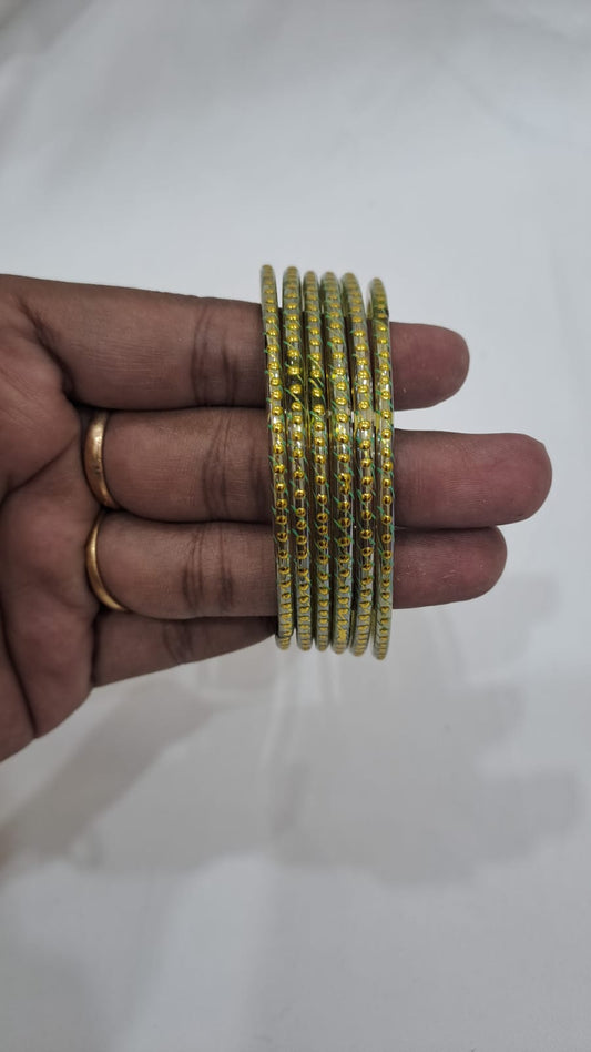 Lovely Light Green Color Checked Design Glass Bangles For Women