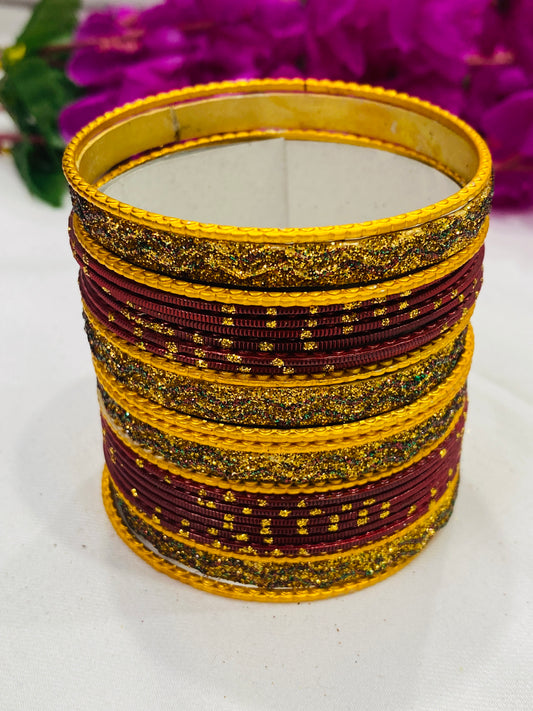 Attractive Maroon Gold Color Designer Metal Bangle Set