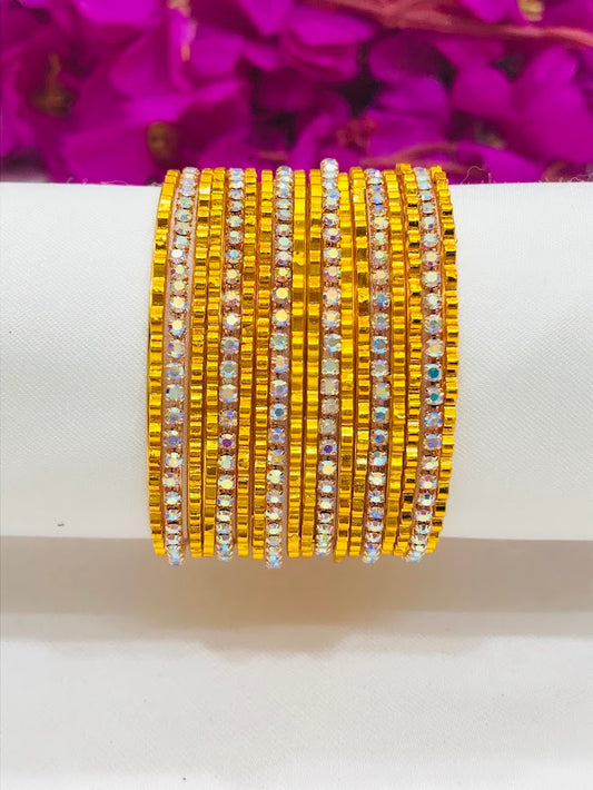 Appealing Yellow Colored Designer Bangles With White Stones For Girls