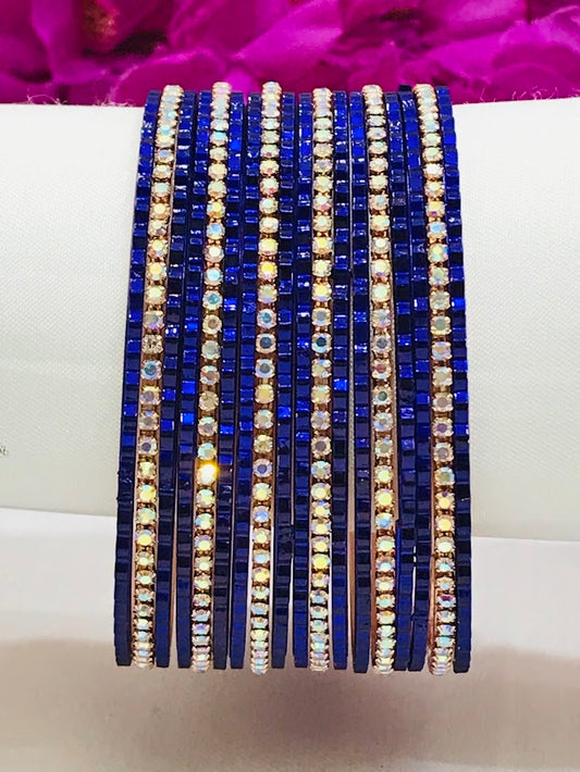 Attractive Blue Color Stone Work Party Wear Metal Bangles For Women