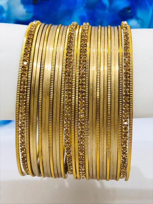 Gorgeous Gold Color Stone Design Smooth Finishing Metal Bangles For Women