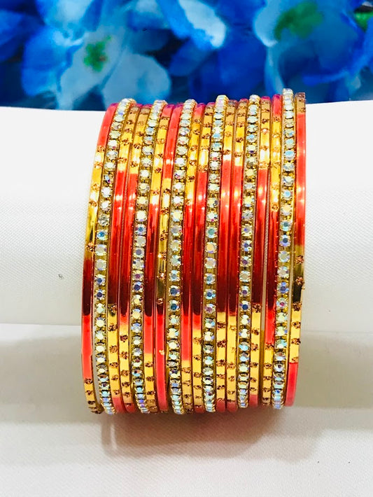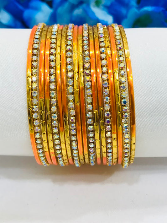 Beautiful Orange Color Party Wear Metal Bangles For Women
