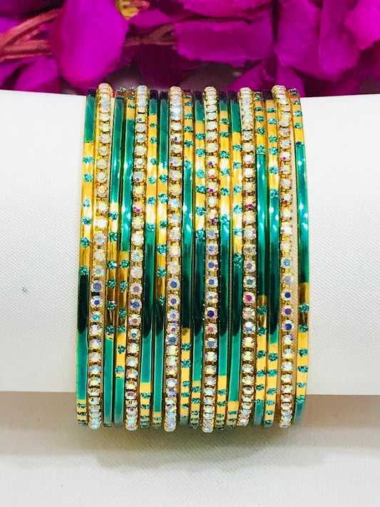 Elegant Teal Green Color Gold Plated Metal Bangles For Women