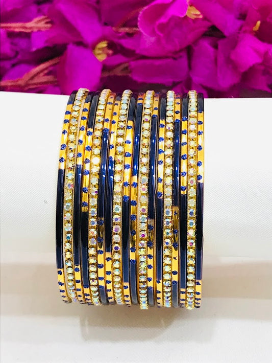 Enchanting Blue Color Stone Designed Metal Bangles For Women
