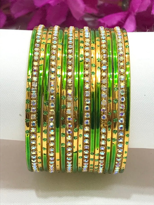 Attractive Green Color Checked Design Glass Bangles For Women