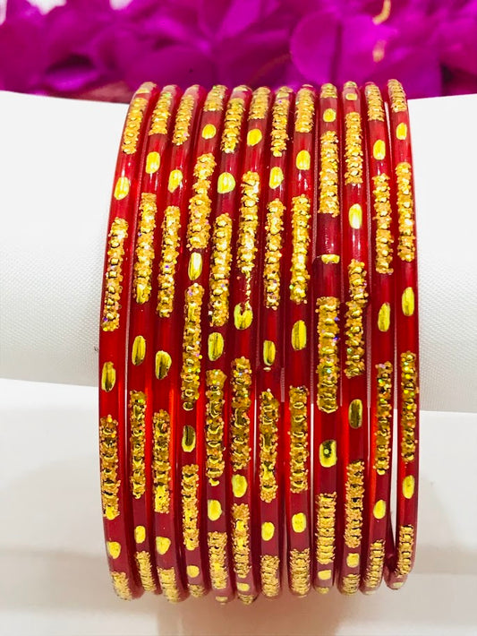 Stunning Red Color Glass Bangles With New Design For women