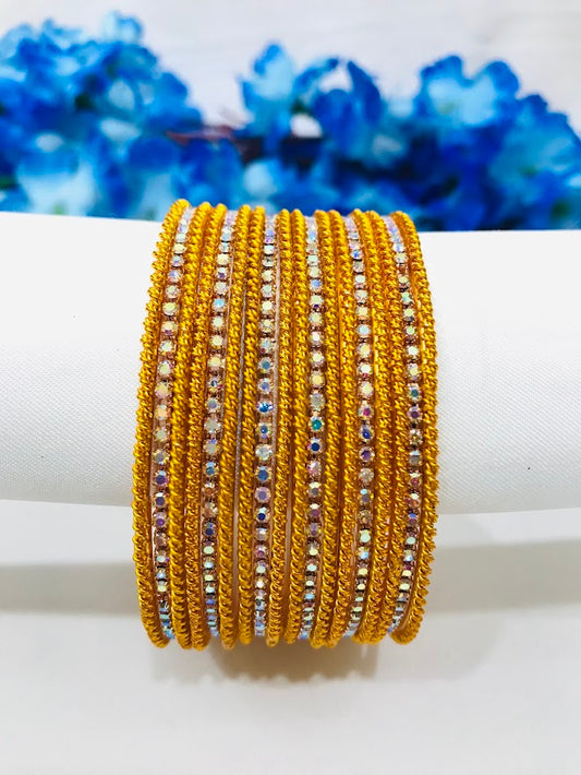 Appealing Yellow Colored Designer Metal Bangles With White Stones