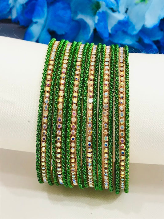Attractive Green Color Metal Bangles With Glittering Stone For Women