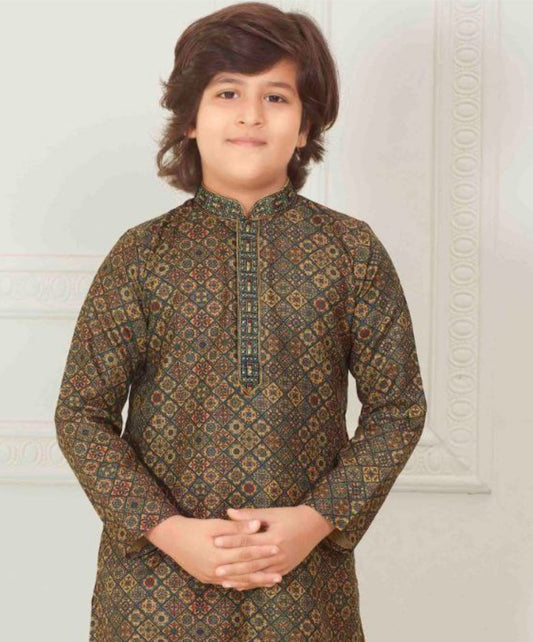 Fabulous Green Color Kurta Pajama Set With Digital Print Work For Boys
