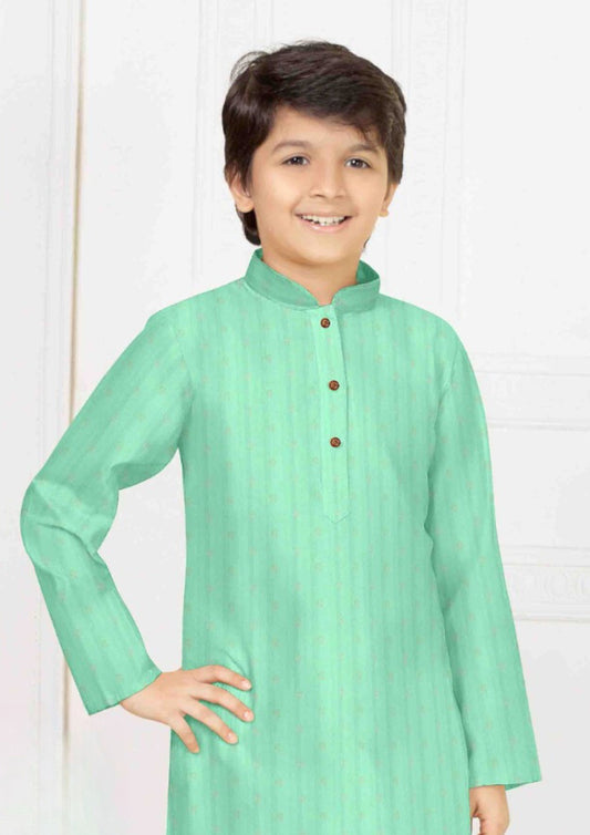 Charming Pista Green Color Cotton With Printed Work Kurta Suits For Boys