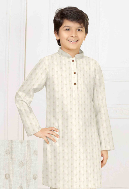 Appealing White Color Poly Blend Cotton Kurta Set With Pajama Pant For Kids