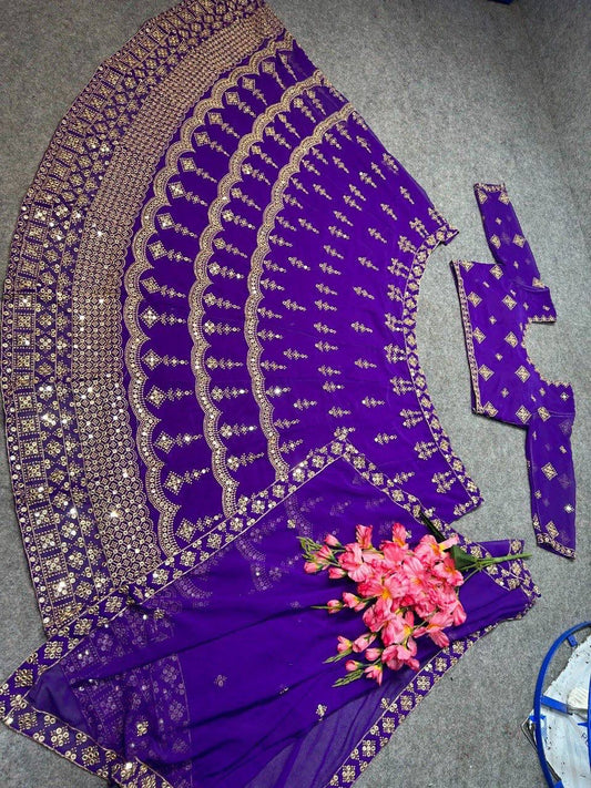 Stunning Purple Color Georgette Sequins Work Lehenga Choli For Women