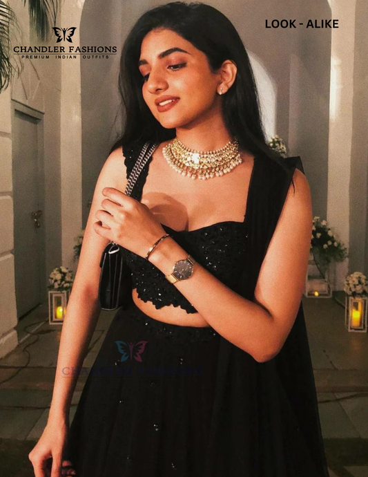 Elegant Black Color Georgette With Sequins And Thread Work Lehenga For Women