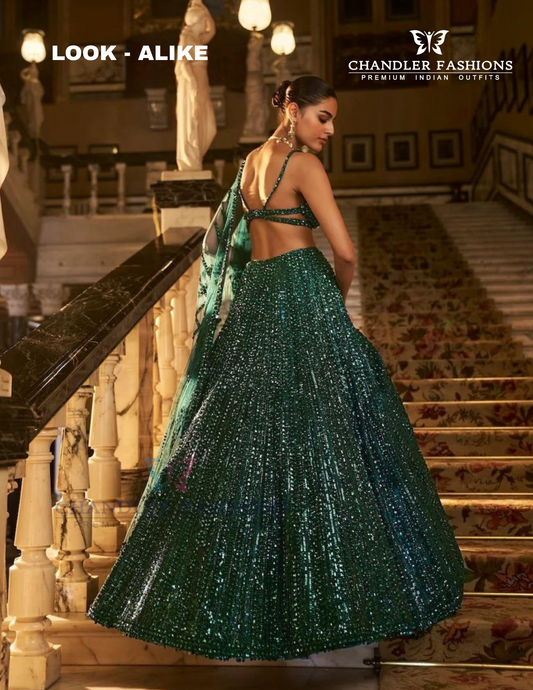Alluring Green Color Rainbow Sequins And Dori Work Lehenga For Women