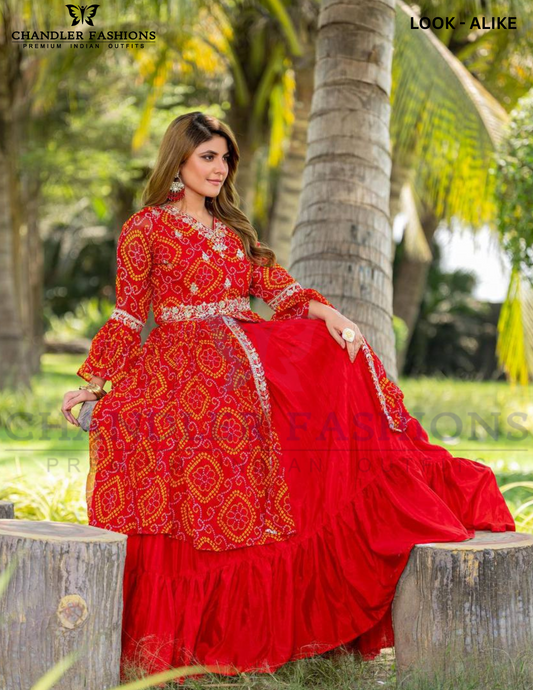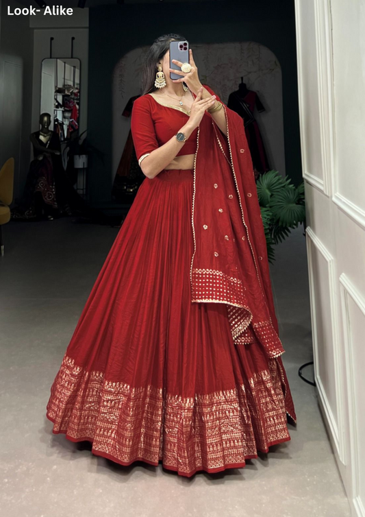 Beautiful Red Color Pure Chinon With Embroidery Thread Work Lehenga Choli For Women