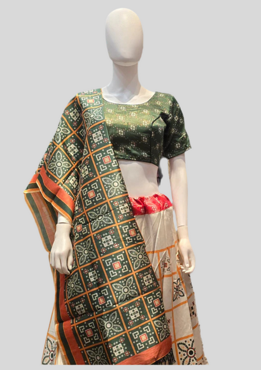 Gorgeous White And Green Color Printed Work Lehenga Choli For Women