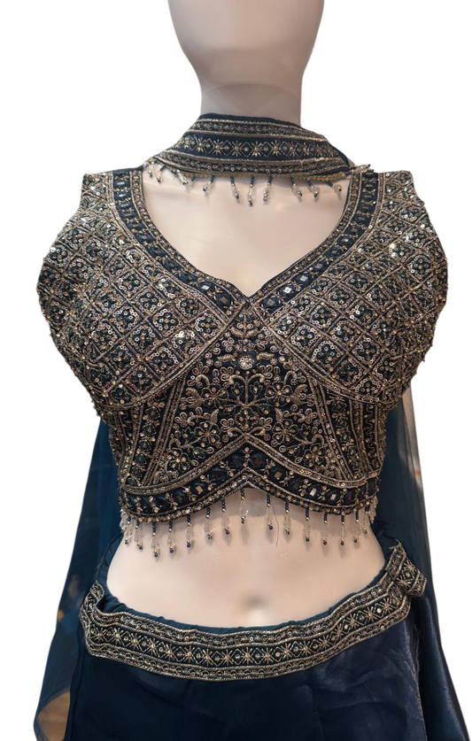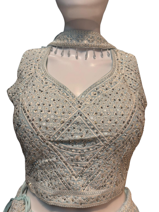 Elegant Blue Color Embroidery Mirror And Sequins Work Lehenga For Women