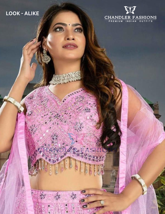 Wonderful Pink Color Net With Embroidery Work Lehenga For Women