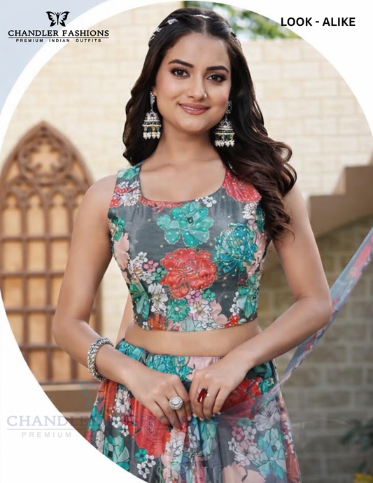 Attractive Teal Green Color Chinon Indo Western Lehenga Choli For Women