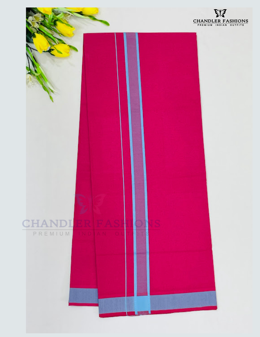 Elegant Men's White Premium Pure Cotton Purple Zari Border Dhoti